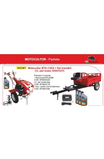 Motocultor BTA-10SG,10 cp +Pachet 3 (1 remorca...